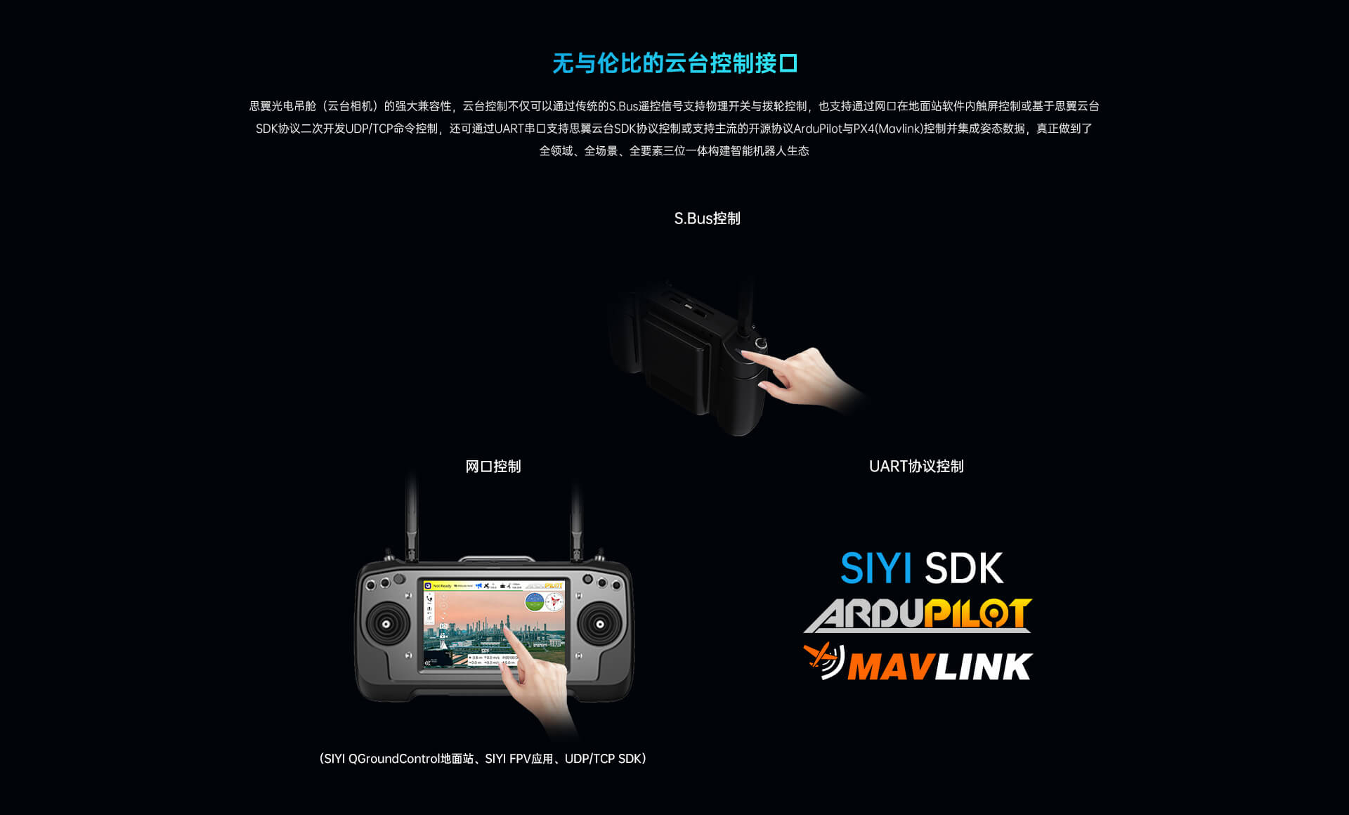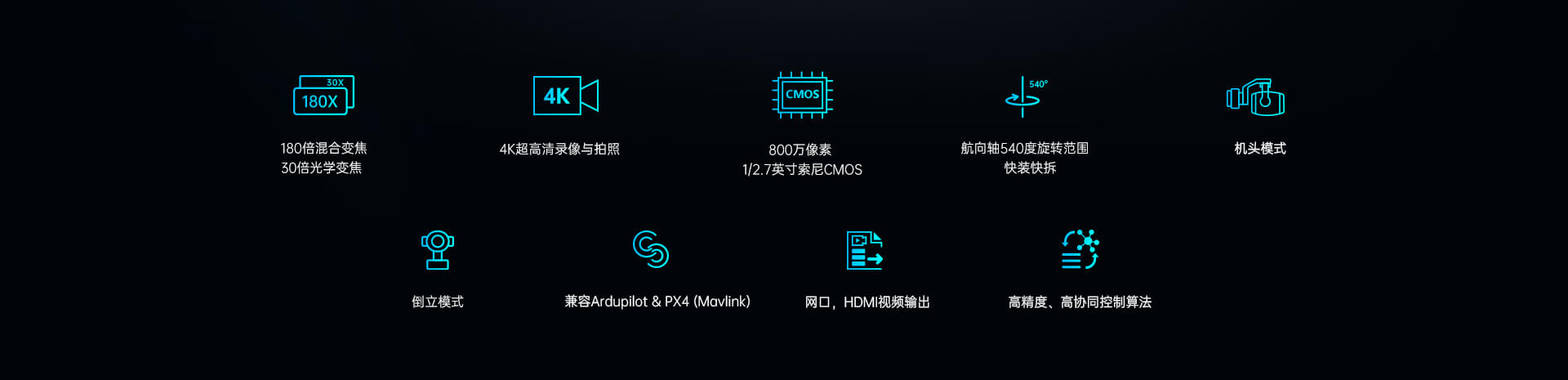 吊艙/云臺(tái)相機(jī) 鏈路產(chǎn)品 飛控系統(tǒng) 動(dòng)力系統(tǒng) 軟件產(chǎn)品